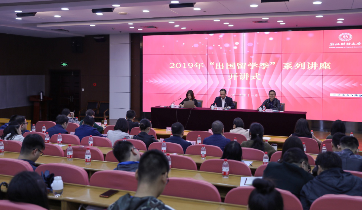 11月7日,浙江财经大学举办“出国留学季”系列讲座开讲式。校党委副书记余建森出席会议并讲话,校侨联主席、留联会会长傅黎瑛教授作了本次系列讲座的首讲。各学院党委副书记、辅导员和有志于出国升学的学生等参加开讲式。会议由学生处处长范建锋主持。