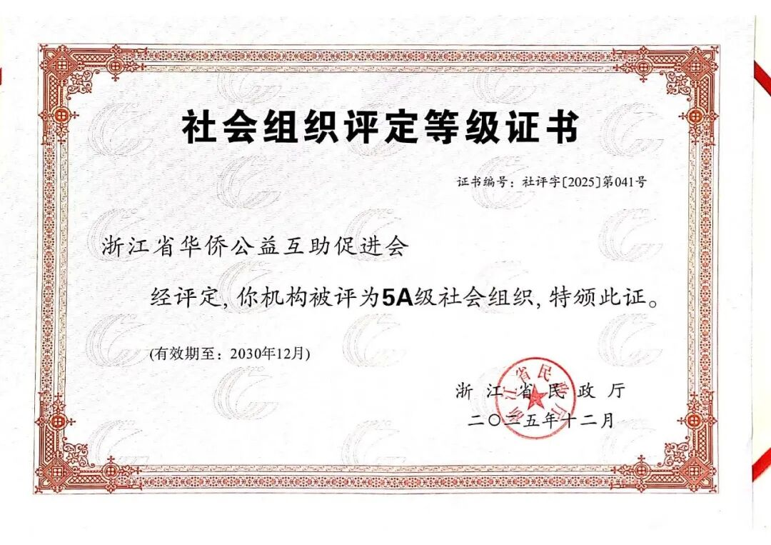 喜报!浙江省华侨公益互助促进会获评“5A级社会组织”